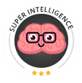 Super Intelligence badge for completing 15 quizzes with a 100% pass grade